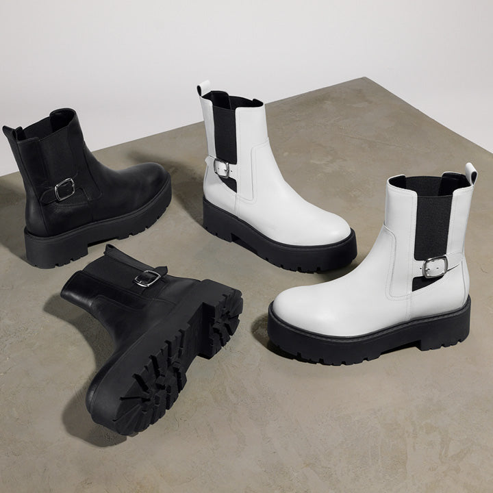 Marc Fisher Womens Fredy Lug Sole Ankle Boots Booties Black Leather 7 M New Ebay